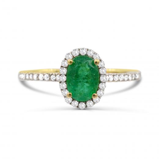 This stunning emerald and diamond halo ring is a true show stopper. It is the perfect ring to show them just how much you care. It is the perfect addition to your attire and it has the perfect classic look for anyone. A truly stunning piece!