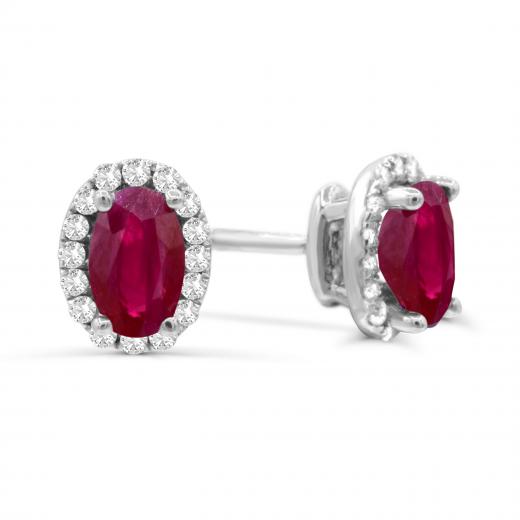 14K White Gold Ruby & Diamond Earrings