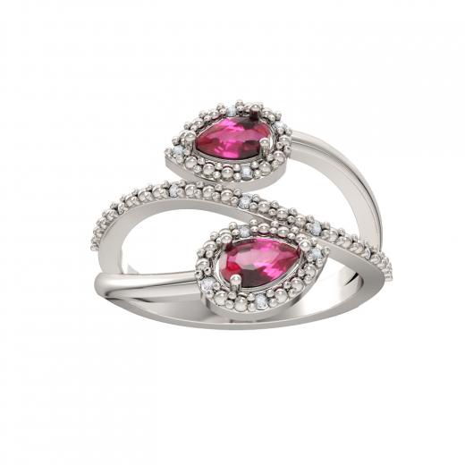 Fashioned from sterling silver, it showcases a captivating created ruby gemstone accented by delicate diamonds. Its vibrant hue and subtle sparkle make it a beautiful and sophisticated accessory that adds a touch of glamour to any attire.