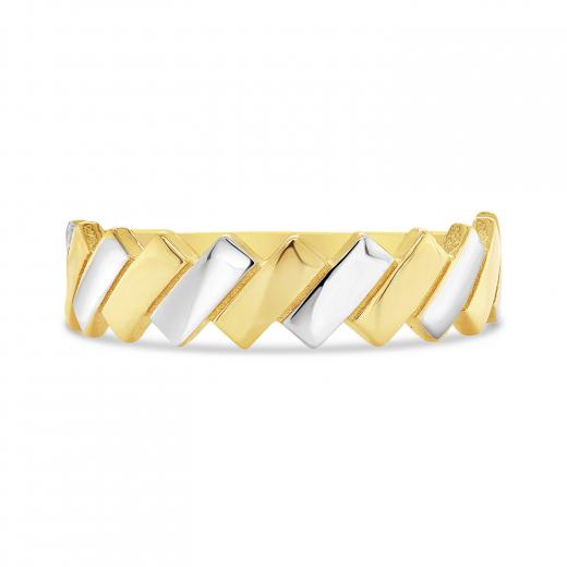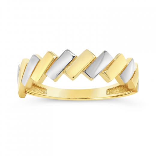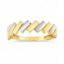 Crafted in the luster of 10k yellow and white gold is a stylish and modern bar ring. The ring is enhanced with a high polish that gives definition to the design. A ring that can be worn with casual or work wear and surely to be noticed by all. Buy this beautiful piece for yourself or for that special someone in your life.
