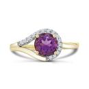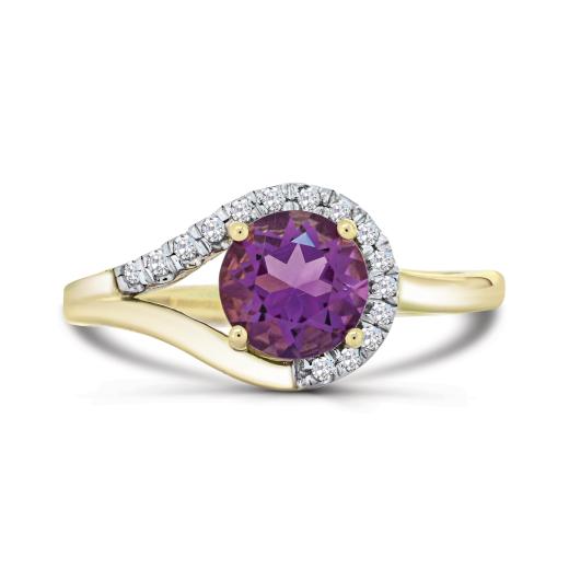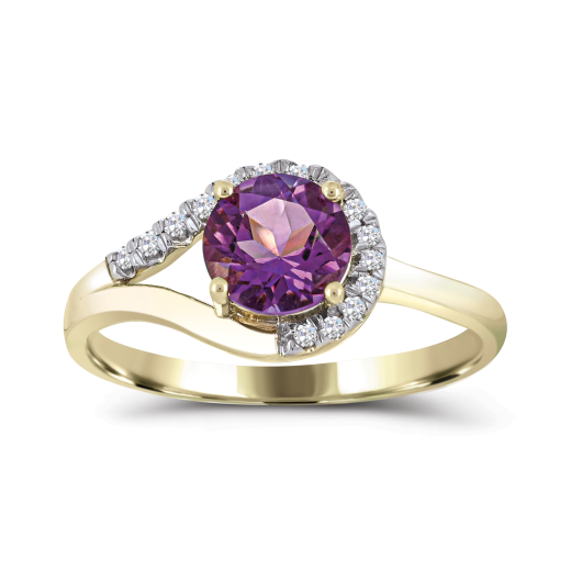This 10K yellow gold amethyst and diamond ring is a striking blend of vibrant colour and sparkling elegance. The rich, purple amethyst is beautifully set in a luxurious yellow gold band, while the delicate diamonds add a brilliant touch of radiance, enhancing the gemstone’s rich hue.