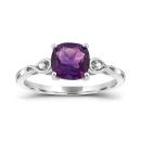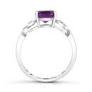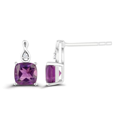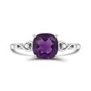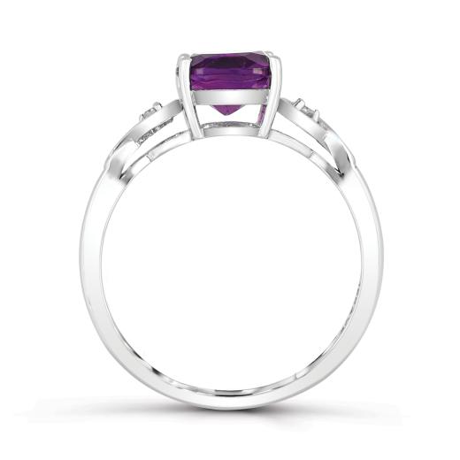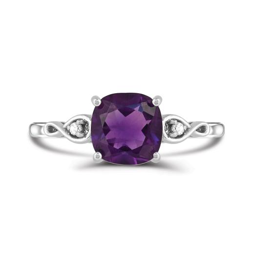 This beautiful infinity ring is crafted in lustrous white gold and features a cushion cut amethyst at its centres accented by shimmering diamonds. This ring is sure to add a touch of elegance to any ensemble. A perfect gift for a February-birthday in your life!