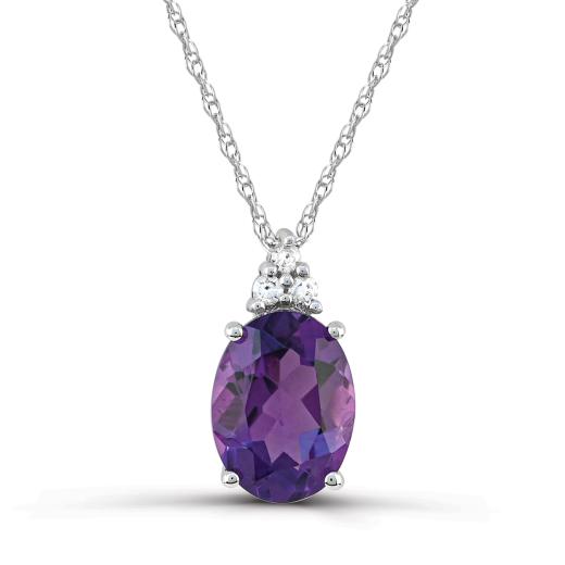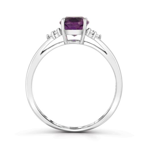 This classic ring is crafted in lustrous white gold and features an oval cut amethyst at its centre accented by shimmering diamonds. This ring is sure to add a touch of elegance to any ensemble. A perfect gift for a February-birthday in your life!
