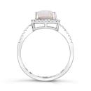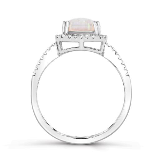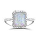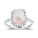 Express your love with this gorgeous created Opal halo style ring in sterling silver. The ring features a cushion-cut created opal gemstone surrounded by created white sapphires. This is sure to become a favourite in anyone's jewellery collection.
