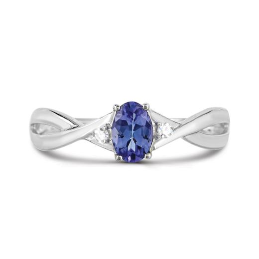 This classic 10k white gold crown ring features an oval cut Tanzanite accented by glittering diamonds. A wonderful addition to any jewellery collection. Buy this special piece for yourself or for that special someone in your life.