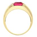 Bold and distinguished, this 10K yellow gold men's ring showcases a vibrant created ruby, complemented by dazzling diamond accents. The striking contrast between the fiery red gemstone and the warm gold setting makes it a powerful statement piece for the modern man.