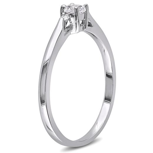 This elegant 1/4ct TGW Round Cut Created White Sapphire and Diamond Accent Ring in Sterling Silver exudes timeless beauty. The round cut created white sapphire center stone is flanked by delicate diamond accents, adding a touch of sparkle. The sleek sterling silver band enhances the overall sophistication of the ring, making it a perfect choice for a subtle yet stunning accessory. Ideal for engagements or special occasions, this ring symbolizes enduring love and elegance.