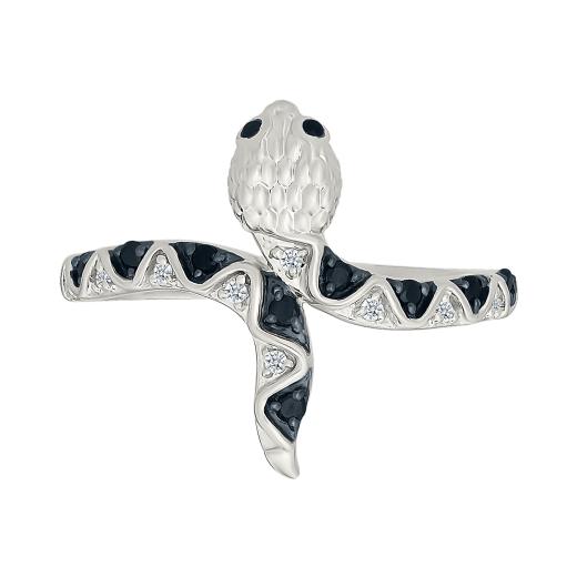 Designed with captivating detail, this 0.11CTW black & white diamond open snake ring in sterling silver features an intricate scaled pattern that mimics the natural movement of a serpent. The open design wraps gracefully around the finger, with shimmering white diamonds along its body and striking black diamond eyes. A bold and enchanting piece, perfect for those who love unique, statement jewelry.