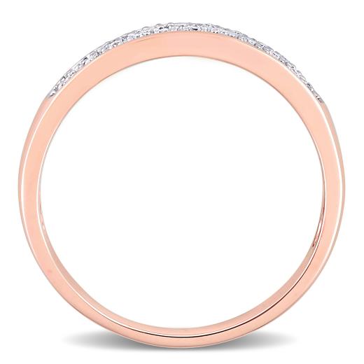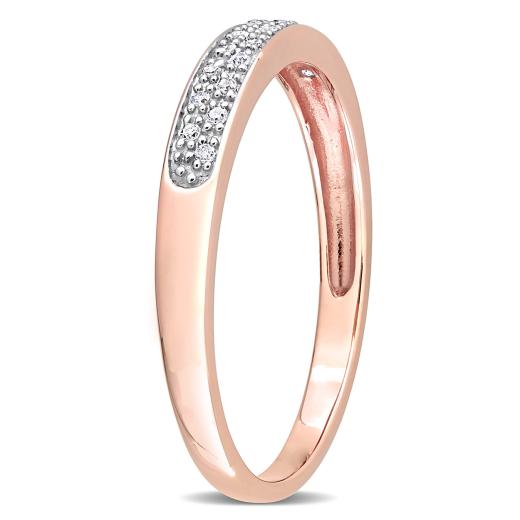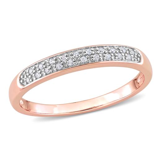 This charming 1/10 CT Diamond Fashion Ring is crafted in 10K pink gold, offering a romantic and modern design. The band is adorned with a row of sparkling round diamonds, which beautifully contrast with the soft blush tone of the pink gold. The combination of warm pink gold and brilliant diamonds creates a delicate yet eye-catching look, perfect for those who appreciate subtle elegance. Ideal for everyday wear or as a statement piece, this ring adds a touch of feminine sophistication to any jewellery collection.