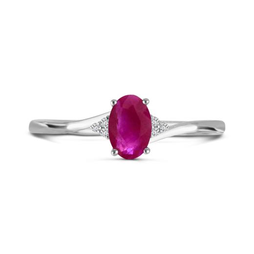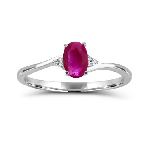 This 10K white gold ring features a rich ruby center framed with a delicate accent of diamonds. Its timeless elegance and refined design make it a versatile addition to any Jewellery collection. A graceful balance of warmth and sparkle, perfect for marking life's treasured moments.