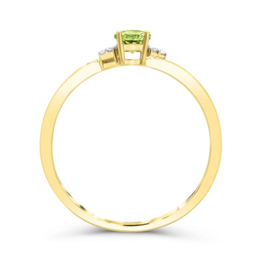 This 10K yellow gold ring features a vibrant peridot centerpiece that gleams with lively green brilliance. Accented by a delicate touch of diamonds, it radiates elegance and subtle charm. Its bright and cheerful style makes it a stunning signature piece, perfect for celebrating personal style with a fresh twist.