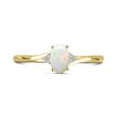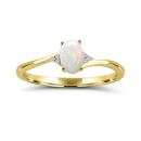 This 10K yellow gold ring features a luminous opal that shimmers with soft iridescence and natural elegance. A delicate accent of diamonds adds a gentle sparkle that complements its ethereal glow. With its warm golden tone and captivating play of colour, this ring is a timeless celebration of beauty and individuality.